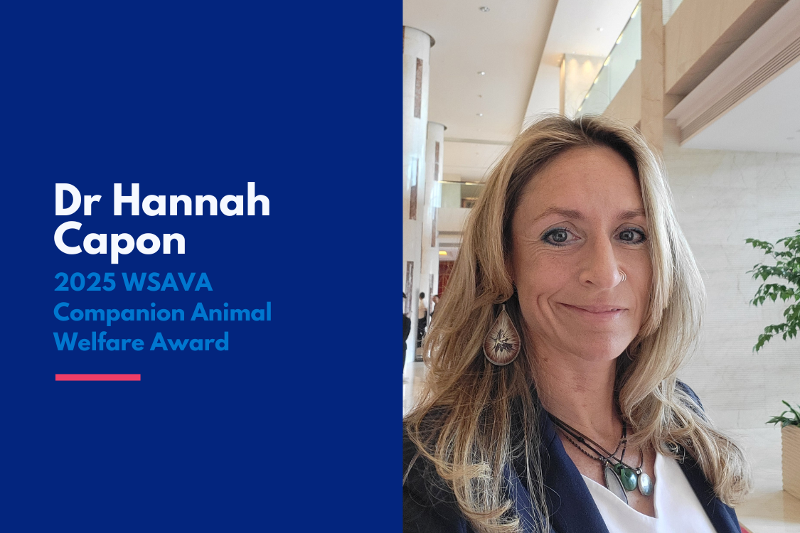 We are proud to announce that the 2025 WSAVA Companion Animal Welfare Award has been awarded to Dr. Hannah Capon (United Kingdom). Her nomination was submitted by the British Small Animal Veterinary Association (BSAVA) in recognition of her tireless commitment to improving the lives of dogs affected by chronic pain, particularly osteoarthritis, and for her pioneering leadership in veterinary education and advocacy.