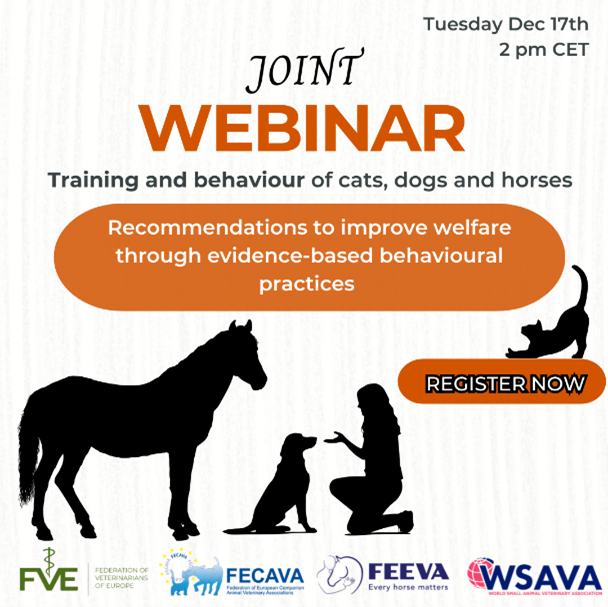 A coalition of veterinary associations, led by the Federation of Veterinarians of Europe (FVE) and including the Federation of European Companion Animal Veterinary Associations (FECAVA), the Federation of European Equine Veterinary Associations (FEEVA), and the World Small Animal Veterinary Association (WSAVA), has come together to address key issues in animal welfare. Together, this coalition has produced a comprehensive Joint Position Paper, presenting 14 key recommendations aimed at enhancing companion animal behaviour and training welfare.